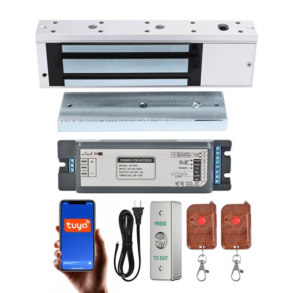 Smart Door Access Control System 1200lbs Magnetic Lock Kit with Tuya App & Remote Control Stainless Steel Exit Button