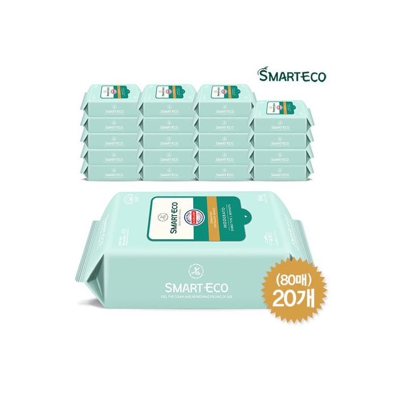 Smart Eco Smart Eco wet wipes 80 sheets, 20 refills (Moderato) / 스마트에코 스마트에코 물티슈 80매 리필형 20개(모데라토)