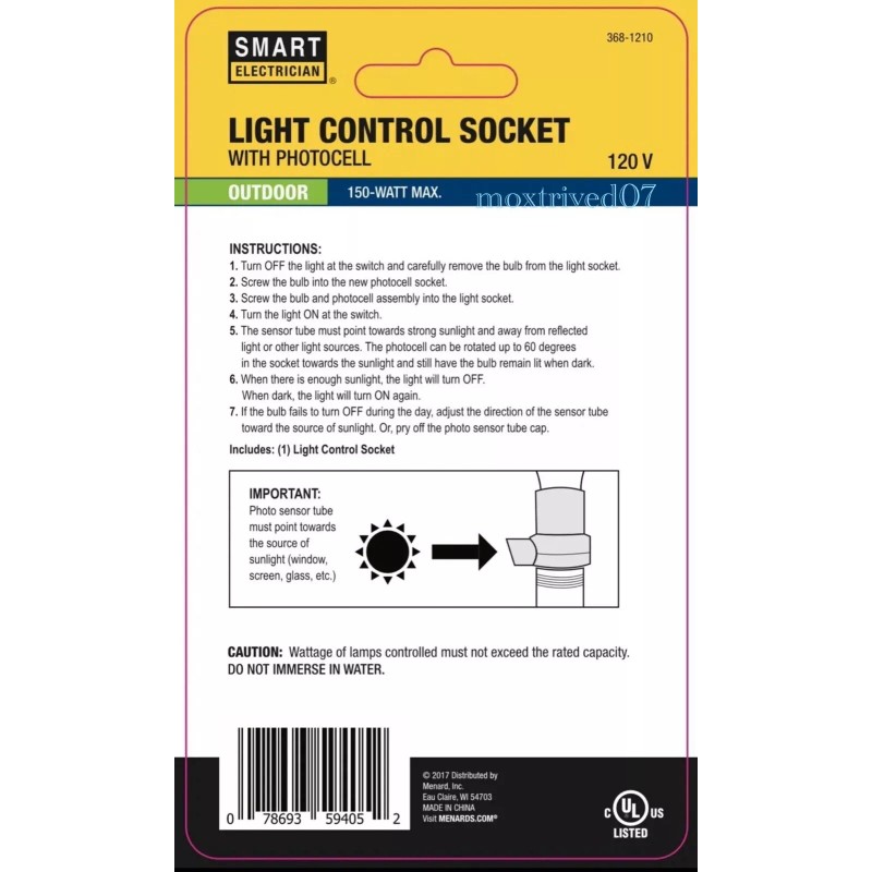 Are you tired of manually turning on outside lights or frustrated when you forget to turn off that security light in the daytime? Use this socket with a built-in photocell to automatically turn on outdoor lights at dusk and off at dawn. Simply insert the socket into your outdoor socket, install the bulb and that's it - let the photocell take care of the rest. Perfect solution for porch lights, floodlights, security lamps or landscape lighting. Plus, enjoy some energy savings and less frequent bulb changes when your light is only turned 'on' when needed and 'off' in daylight. Compatible with incandescent light sockets. Can also be used indoors for lamps and other lighting fixtures.