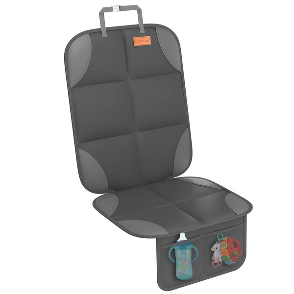 SMART ELF Car Seat Protector for Child Car Seat - Waterproof 600D Fabric Baby Seat Protectors for Non-Slip Backing Mesh Pockets for Baby and Pet, Easy Storage and Clean [1 Pack] Dark Gray