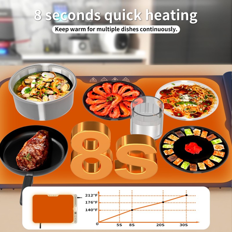 - This heating pad simplifies operation through intelligent interaction, eliminates hidden dangers through safety design, ensures efficient temperature control experience, and expands the scene with convenient attributes. It accurately meets the core needs of users who find "food easy to cool and traditional insulation tools difficult to use". From function to experience, it is designed around "making hot dishes simpler and safer", suitable for families and dining scenes that pursue quality life and focus on dining experience.
