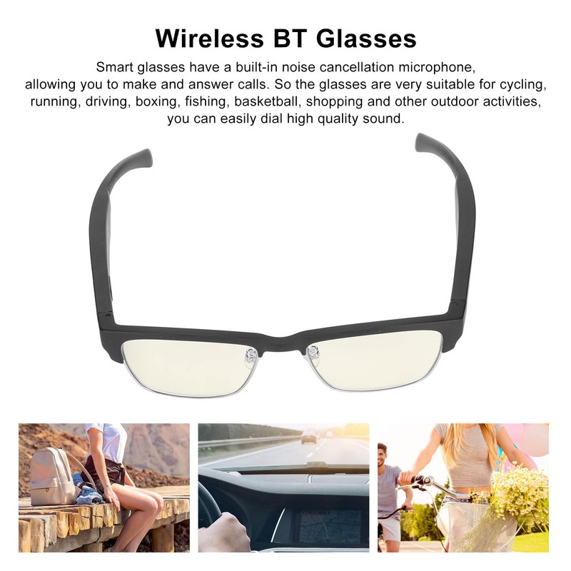 • NOISE REDUCTION Smart glasses have a built-in noise reduction microphone that allows you to make and answer calls. Therefore, the glasses are very suitable for cycling, running, driving, boxing, fishing, basketball, shopping and other outdoor activities. You can easily choose high-quality sound.