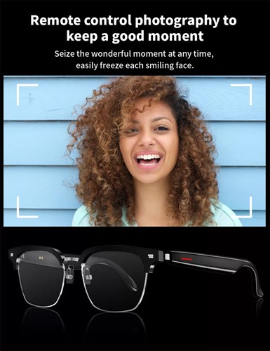 - Fashion smart Glasses:This smart glasses can not only be used as a fashion accessory, but also as a open ear headphones to answer calls or listen to music, providing high-definition stereo sound. Interchangeable lens can meet your needs in various indoor and outdoor scenes. New form ofintelligent interaction, Easy automatic pairing, remote photo taking, Bluetooth audio calling and wake up voice assistant