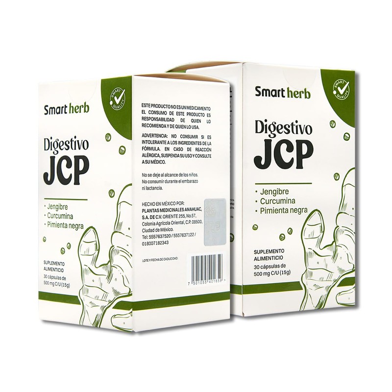Smart Herb Paquete Digestivo JCP, Suplemento Alimenticio, 2 Piezas (30 Cápsulas c/u) con Jengibre, Curcumina y Pimienta Negra para Apoyo Digestivo y Antioxidante