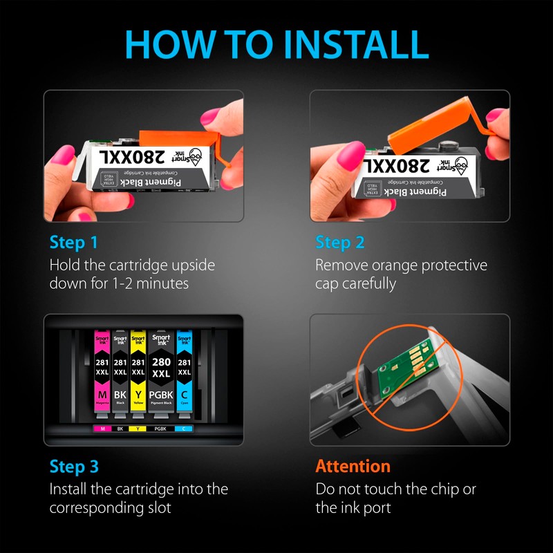 - Get Sharp Text and Vivid Photos: Smart Ink Canon ink 281 and 280XL compatible cartridges are produced with a reliable sponge and premium quality ink to provide high-quality print results at all times