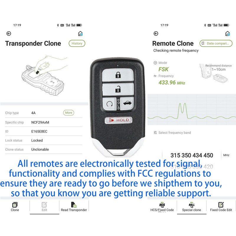- 【Perfect Fitment】Compatible with Honda Accord 2018-2021. Replacement for FCC ID: CWTWB1G0090, Interchange Part Number:72147-TVA-A01, Frequency: 433.92MHz. Chip: 4A/Hitag AES