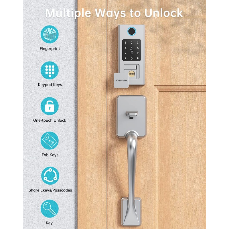 Smart Lock, HEANTLE Keyless Entry, Fingerprint Electronic Deadbolt Digital Bluetooth Biometric Door Locks with Keypads Smart Locks for Front Door, Auto Door Lock Work with App