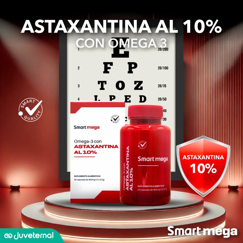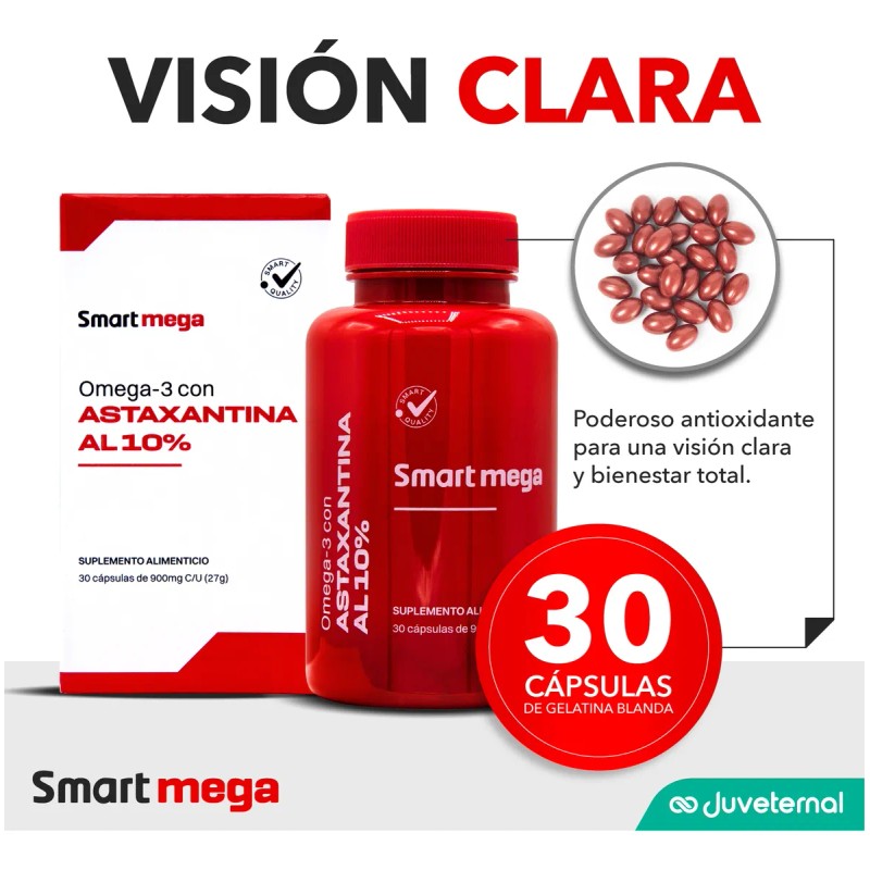 This Smart Mega Pack includes three units combining ultra-pure Astaxanthin 10% with Omega 3. It's an advanced supplement designed to provide superior cellular, cardiovascular, ocular, and cognitive support for comprehensive well-being.