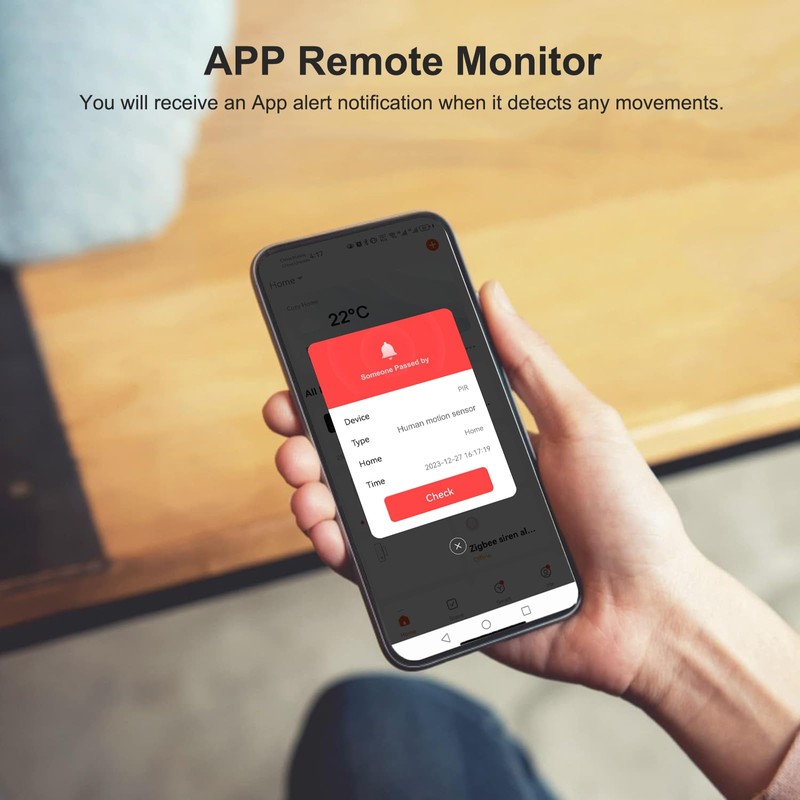 - App remote monitoring: the intelligent motion sensor is compatible with the Smart Life app and the Tuya Smart app. You can monitor the status of the motion sensor in real time with your phone.