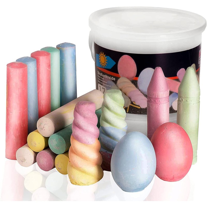Smart-Planet Street Chalk Set 17 Pieces in a Box - Street Painting Chalk - 4 Different Shapes Chalk for Painting - Washable - for Street and Yard