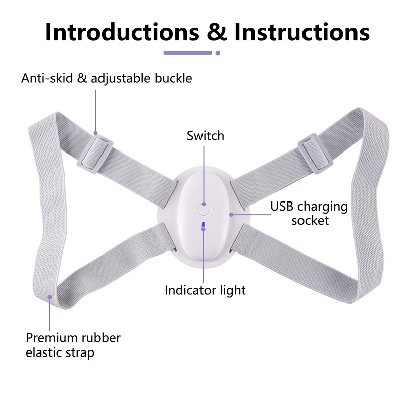 - 1.【Instructions】: Put it on (correct wearing direction: the button is at the top, the light is at the bottom) get your posture where you want it, and hold the button for 2 seconds to turn it on.