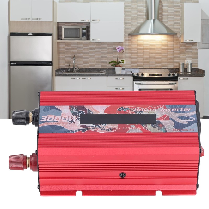 Smart Power Inverters, 3000w , DC 12V to AC 110V Smart Power Convertor, Pure Sine Inverter for Refrigerator, Solar & Wind Power(Red)