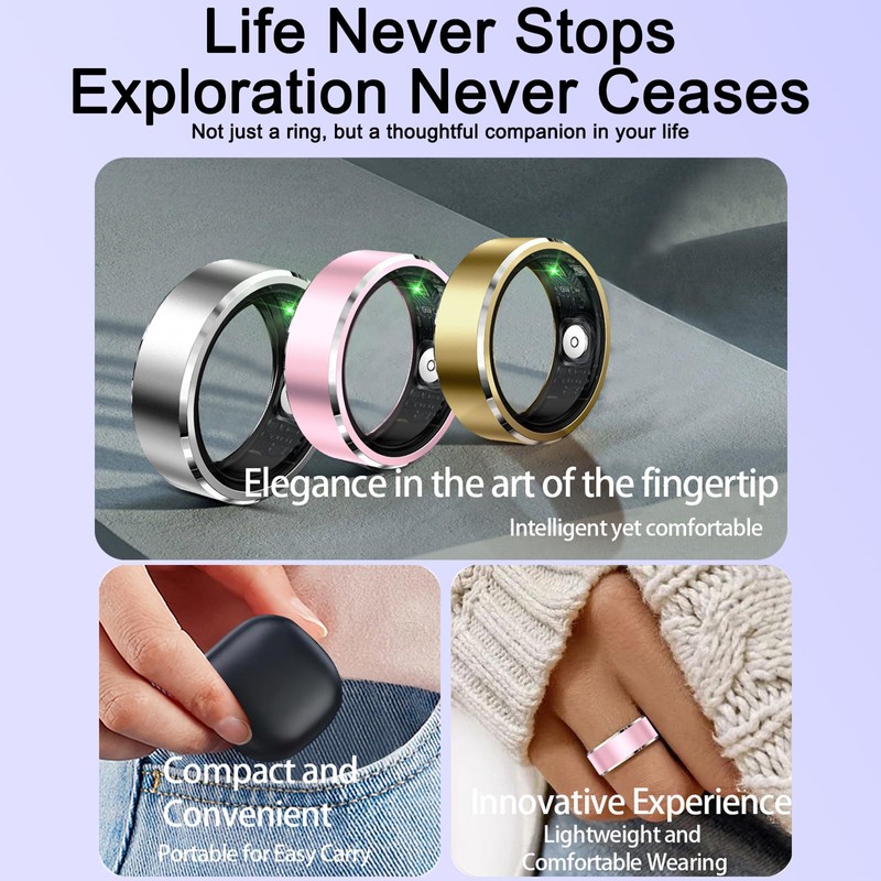 - [Wtih Charging case]:This smart ring comes with a charging case that eliminates the need for a charging cable, making it easy to carry and store.With 10ATM water resistance technology, you can wear it during outdoor rain or snow,this fitness ring is suitable for both men and women, making it a versatile and practical gift for anyone interested in improving their health