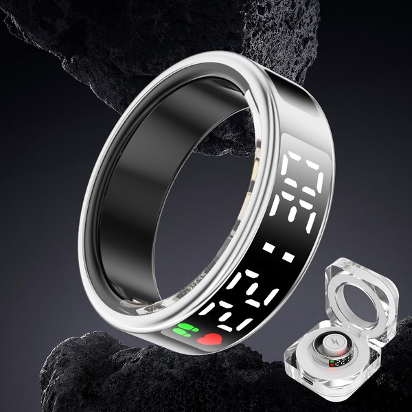 Smart Ring for Men Women - LED Display Tiktok Scroll Ring No App Subscription Sleep Tracker Heart Rate SpO2 Meter Calorie Distance Tracking Remote Trigger Smart Ring Compatible with iOS/Android