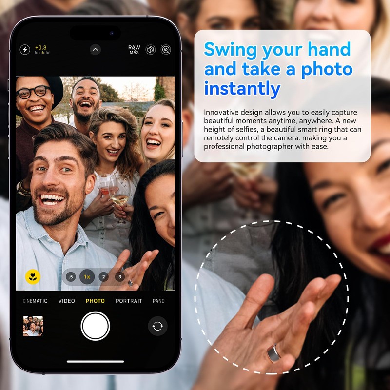 • 【Intuitive Gesture Control】- Easily control your devices with intuitive air gestures, allowing you to scroll through TikTok, remotely capture photos and videos, play music games, and flip through e-books. The vital smart ring is a practical and meaningful gift for any occasion, including Christmas, birthdays, Valentine's Day, and weddings.