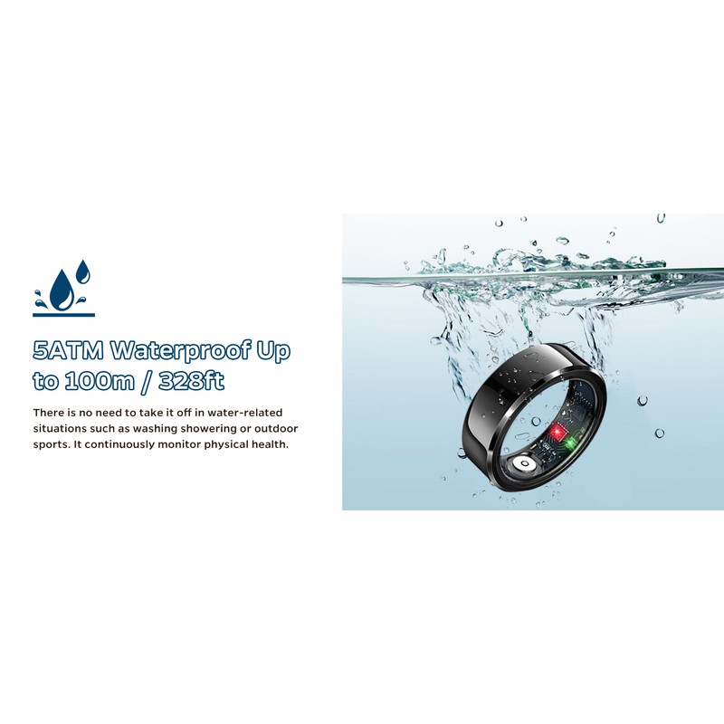 Smart Ring Health Tracker, Sleep Tracker Ring with Heart Rate, Waterproof Fitness Ring for Activity Monitoring/Steps/Distance/Calories, Air Gestures, Up to 7-Day Battery, for iOS Android (Black,#10)
