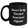 - Surprise your Insurance Adjuster friends with this funny and functional 'Smart Sexy Talented Insurance Adjuster' Black Coffee Mug, a great gift for Christmas.