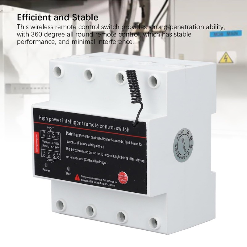Smart Switch, 3 Phase Intelligent Remote Switch 3KM Long Distance AC380V Pump Motor Control Switch with Remote Controller for Garage Doors Security System Equipment Flame