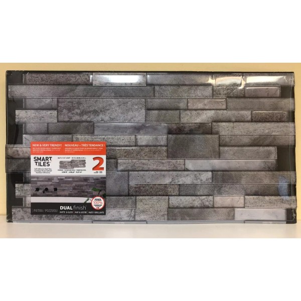 Smart Tiles SM1220 11.4"Wx22.5"L Gray Multiple Finish Mosaic Vinyl Adhesive 2pc