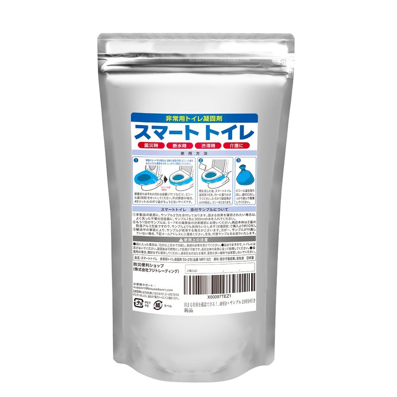 Set a plastic bag over the Western-style/ portable toilet, etc. After relieving oneself, just pour one packet of the coagulant into the plastic bag. The packets are individually wrapped, so you can use this product without dirtying your hands. Ideal for distribution to companies, municipalities, neighborhood associations, or evacuation shelters, etc.