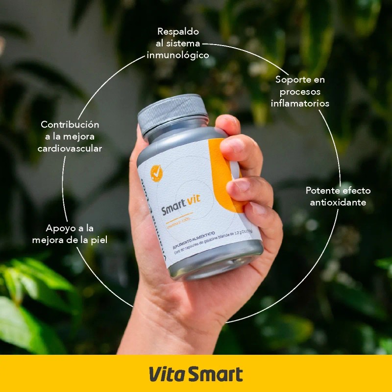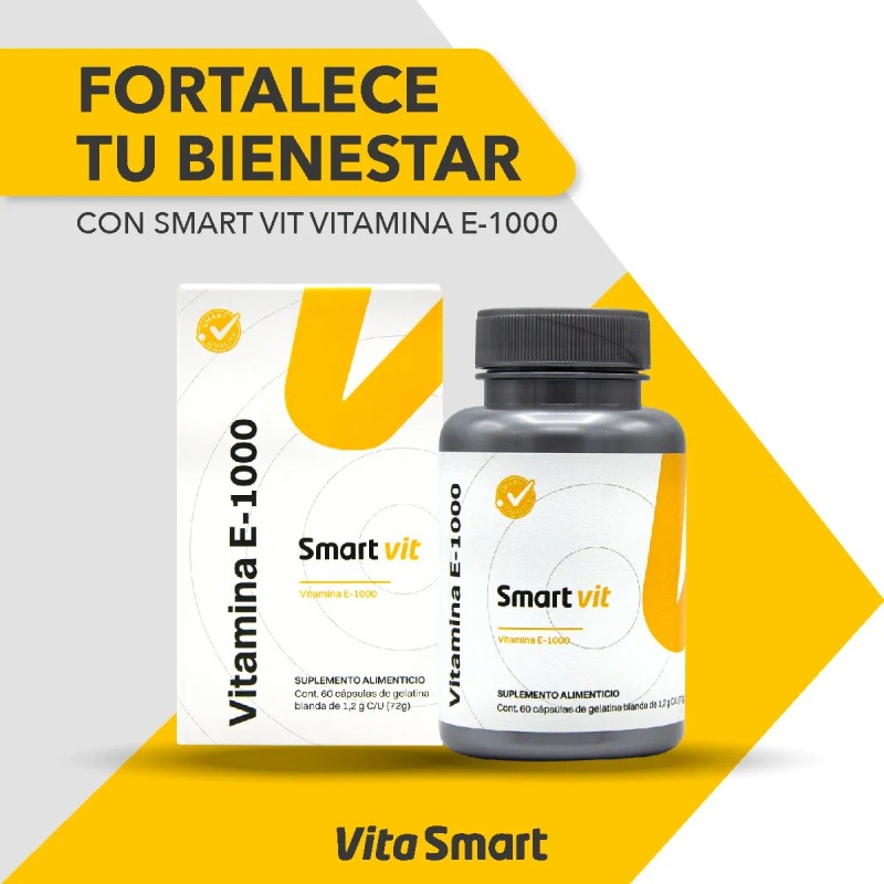 Con Smart Vit Vitamina E-1000, disfruta de una piel radiante y una salud integral. ¡Inclúyelo en tu rutina diaria y siéntete mejor cada día!