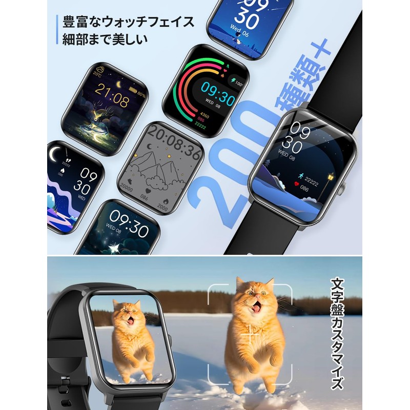 - Multiple Dial Changes: In addition to the dial of the watch, there are hundreds of different dials in the dedicated app. You can choose your favorite images and upload them to customize. Other features: Music playback, smartphone finding, calculator, password lock, control, flashlight, remote camera, weather forecast, alarm, multi-language, etc