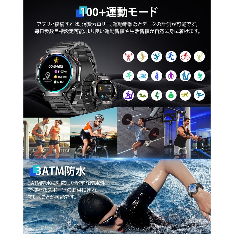- 1.39 inch Large Screen & 3 ATM Waterproof & Military Standard Smart Watch: This smart watch has a 3 ATM waterproof function so you can use it without worrying about water or sweat. This sport watch can be used outdoors or in dust-filled manufacturing factories, it has a rugged design such as dustproof, splashproof, shockproof, high temperature and low temperature resistance, and can pass many military standard tests. It also features a 1.39-inch touch display that allows you to express beautiful colors in high definition, and a large screen with excellent visibility, allowing you to see the image quality more clearly and the text is displayed on a larger screen. Provides unprecedented comfort and superior maneuverability. Please refrain from using in baths, saunas, sea water, hot springs, etc
