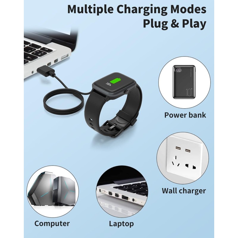 - 【Versatile Charging Options】Charge your smartwatch using any USB port available — whether on your laptop, desktop, power bank, or car adapter. The wide compatibility allows for a high-efficiency charging experience wherever you are, ensuring your watch is always powered up.