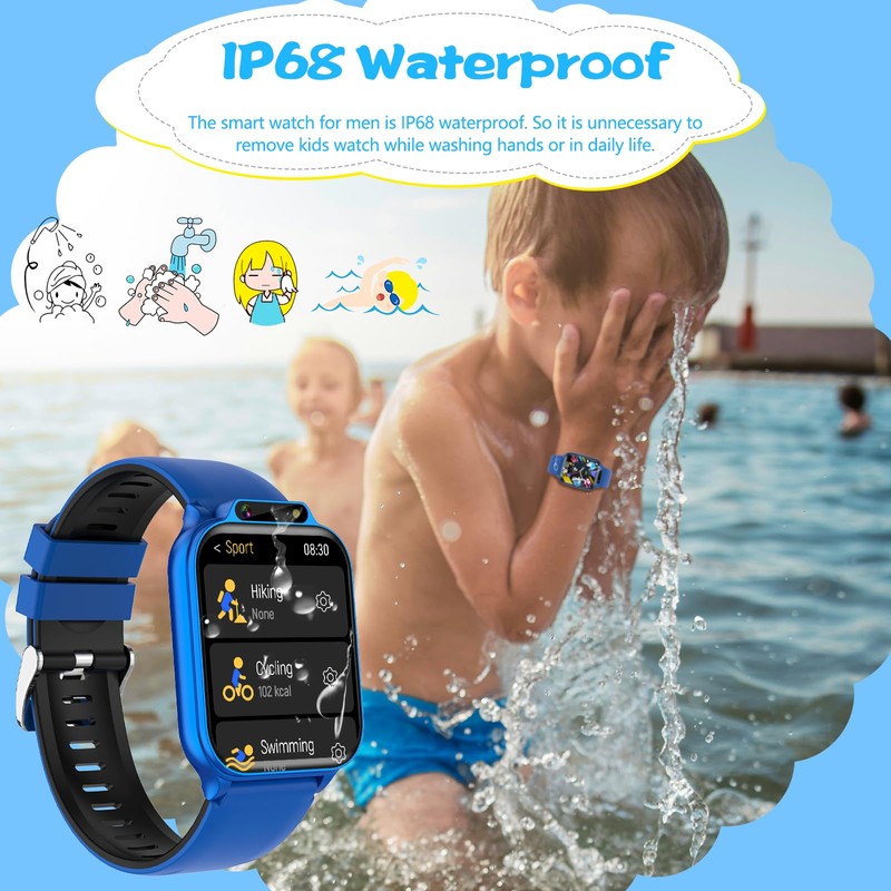 - 【IP68 Waterproof & Durability】This kids watch built with a sturdy stainless steel case(1.5-meter drop tested) and IP68 waterproofing for storms/pool play. Smart Watch for Kids Teens Automatically counts steps, distance, calories burned, and active minutes and Supports 100+ sports modes.