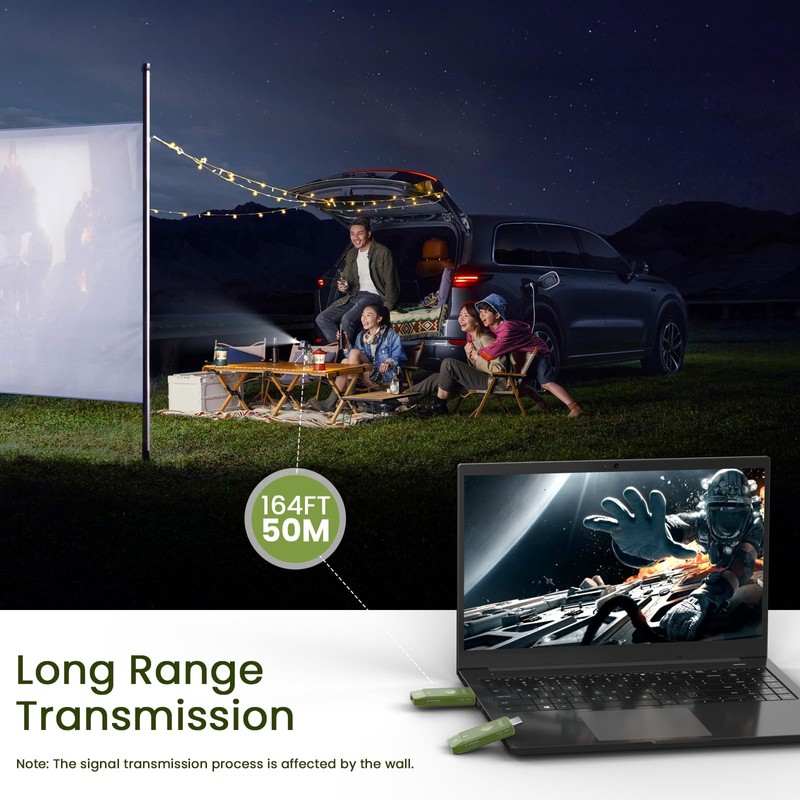 - True Wireless: The transmitter can be used normally without inserting a power cord. The feature is only available for laptops manufactured after 2022