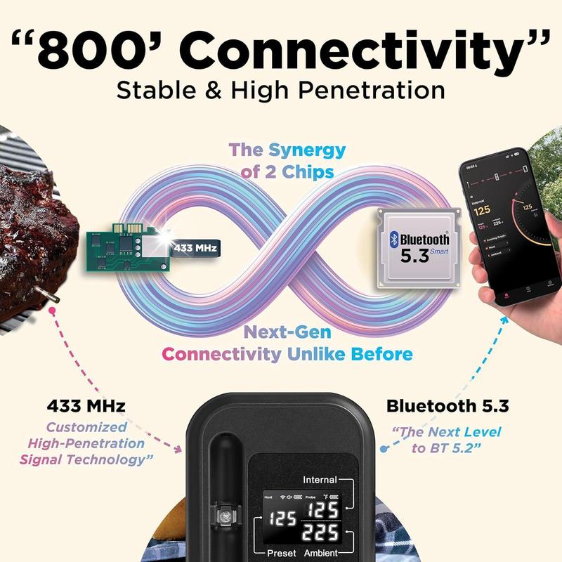 Smart Wireless Meat Thermometer, Long Range Bluetooth-compatible Meat Thermometer, Digital Instant Read Food Thermometer for Kitchen, Kitchen Accessories