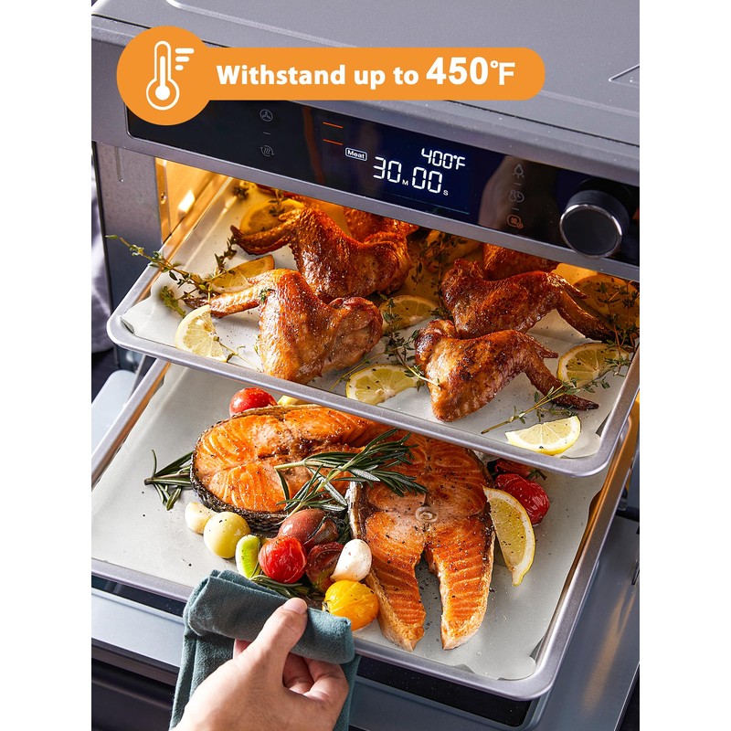 • Non-Stick & Oven Safe: Oven safe up to 450℉, meet your daily baking needs. Since it's non-stick, your food will not stick to the sheet, ensuring that it retains its full flavor and texture.