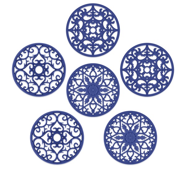 SMARTAKE 6 Set Silicone Trivet Mats, Multi-Use Carved Trivet Mat, Insulated Non-Slip Durable Kitchen Mats, Flexible Modern Kitchen Table Mat, for Hot Dishes, Pots, Dining Countertop, Navy Blue