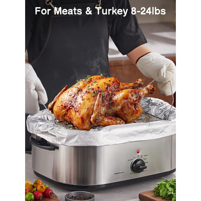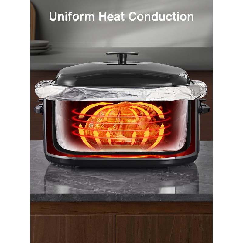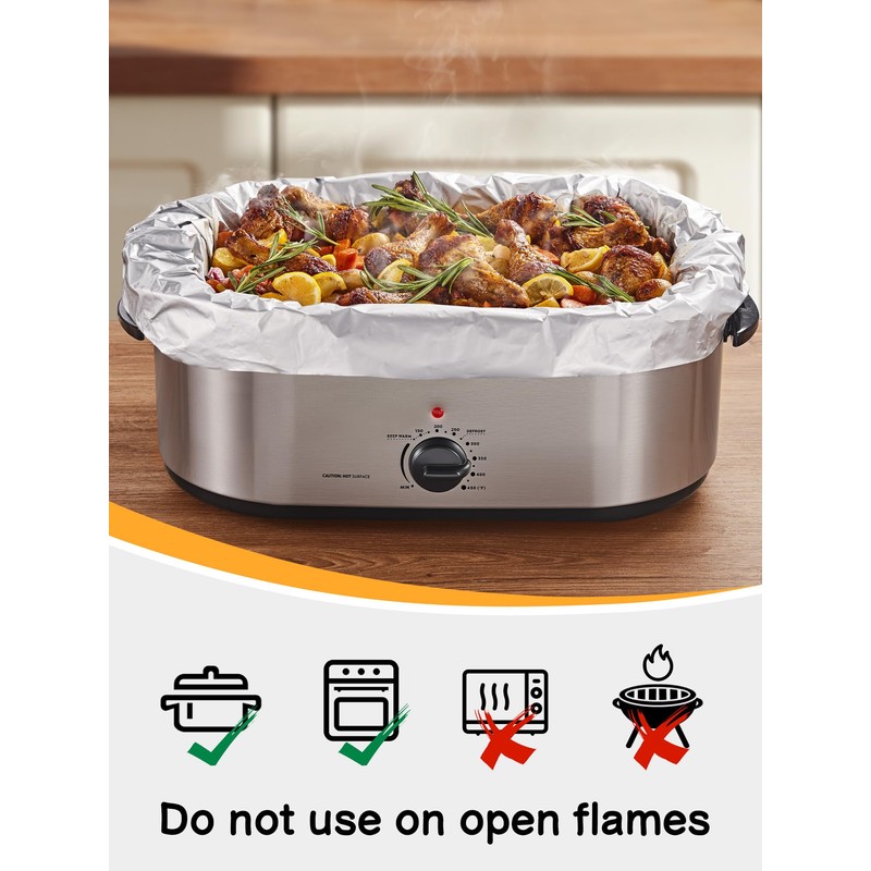 - Effortless Cleaning: One-step cleaning solution for roasting! Eliminate the need to scrub your electric roaster pan with our foil electric roaster liners. Greaseproof and leakproof roaster liners keep your roaster clean and help extend its lifespan. They offer a convenient solution for kitchen messes