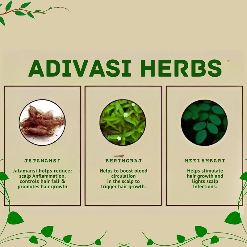 - PURE ADIVASI HAIR OIL: Adivasi Neelambari Herbal Hair Oil is basically made by pure Adivasi ayurvedic herbs which effectively prevent the hairs fall and help to grow long hairs with no side effect.