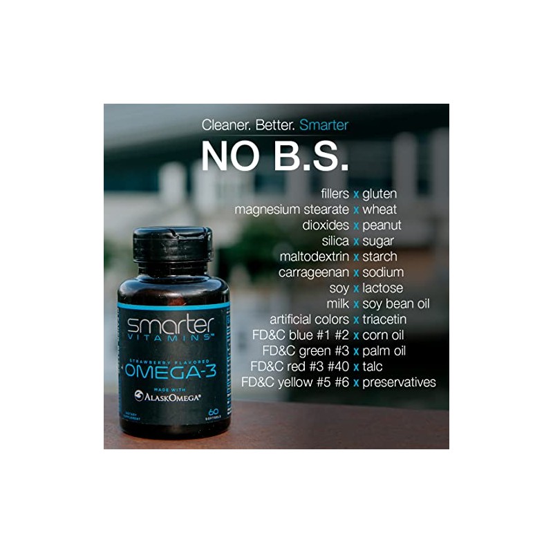 SmarterVitamins Omega 3 Fish Oil, Strawberry Flavor, Burpless, Tasteless, 2000mg, DHA EPA Triple Strength Brain Support, Joint Support, Made with AlaskOmega®, Heart Support