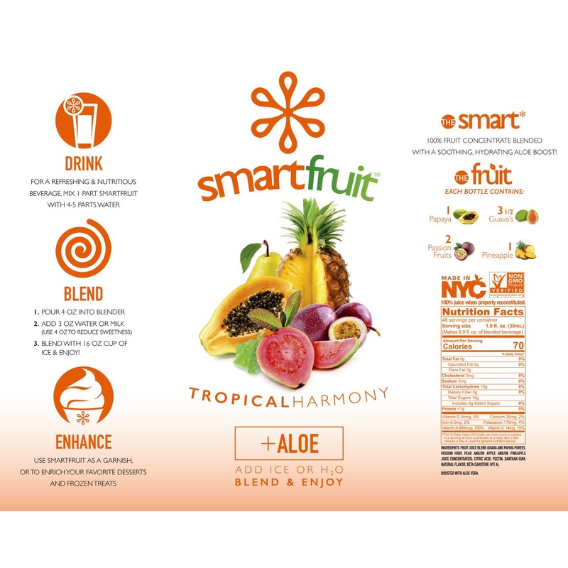 Smartfruit Tropical Harmony + Aloe, 100% Real Fruit Purée, Non-GMO, No Additives, Vegan - 48 Fl. Oz