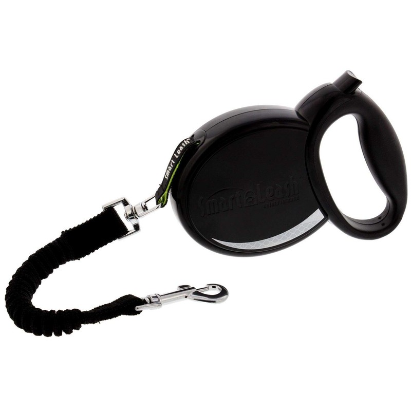 - Detactable reflective wrist strap for added safety. a high-strength bungee is attached to the clasp to absorb the normal stresses associated with walking your dog when the leash is locked.