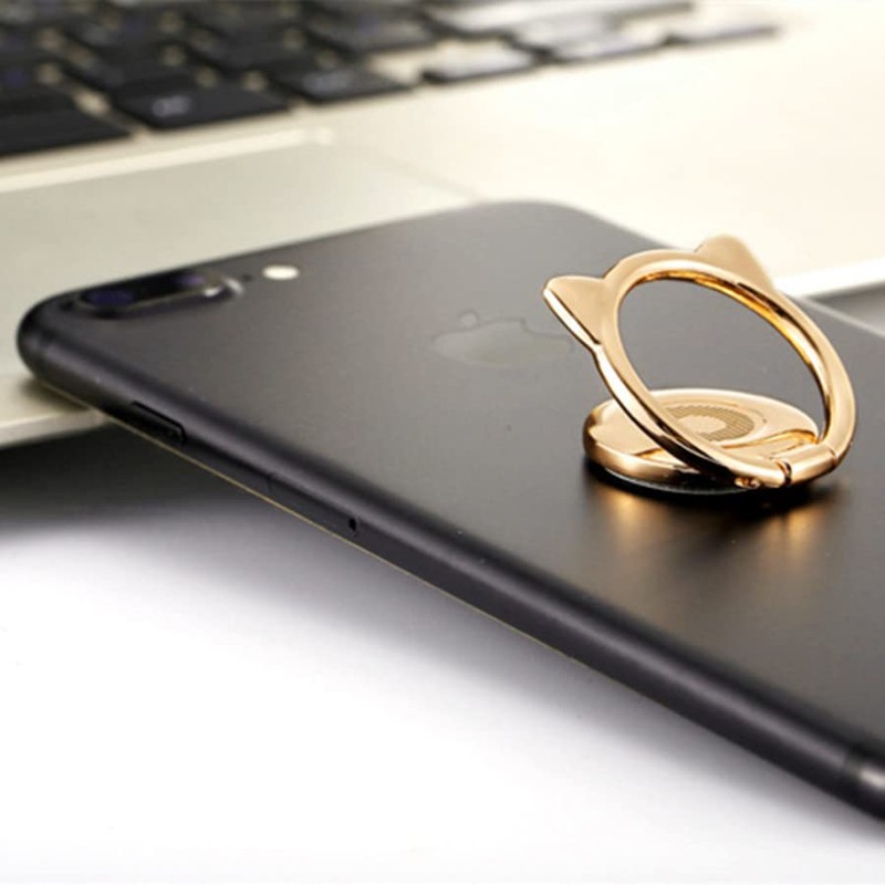 Smartphone Ring, Cute Cat Ears, Magnet, Drop Prevention Ring, Thin, Bunker Ring, Stand Function, One-Handed Operation, 360 Rotation, Strong Adhesion, Compatible with Car Holder, Compatible with