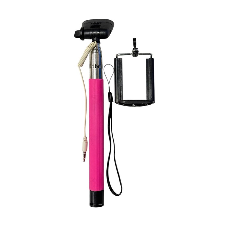 Smartphone selfie stick, just plug it into the earphone jack (one-touch selfie stick/pink)