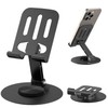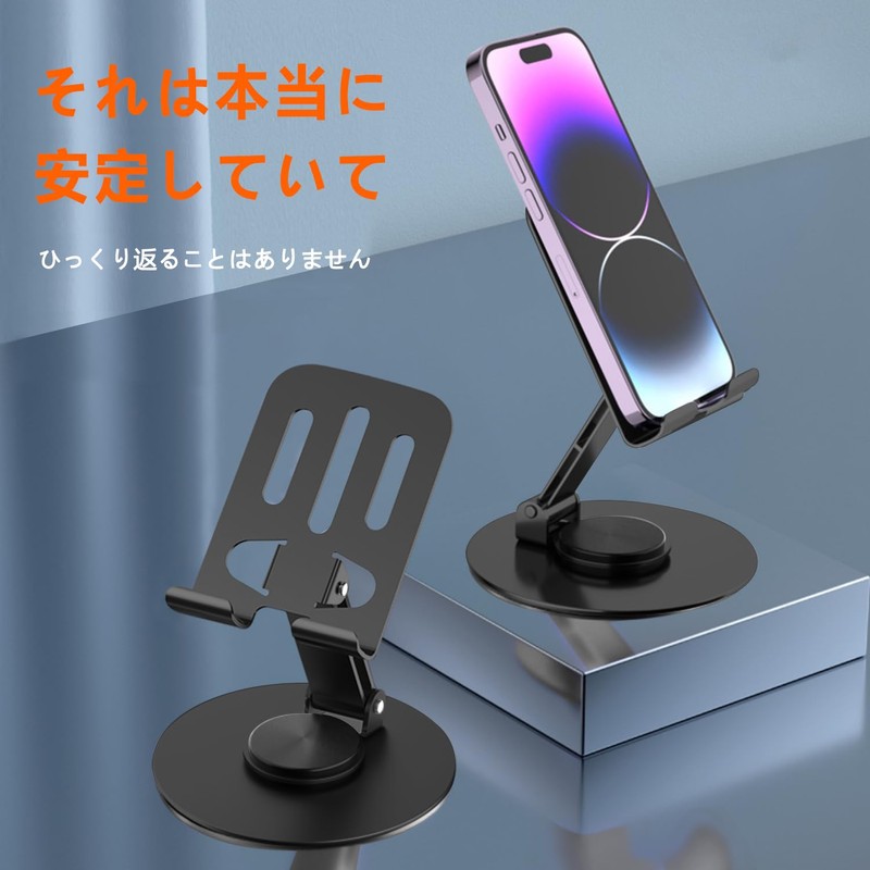 - 360 Degree Rotation: The smartphone stand base rotates 360 degrees, so you can freely rotate your smartphone or iPhone in the direction you want to show it off. It has a nice click and light sound and rotates for a very luxurious feel. Improve posture and relieve neck, shoulder and back fatigue. The angle is also adjustable, so you can freely adjust the angle and height of your own comfortable when using