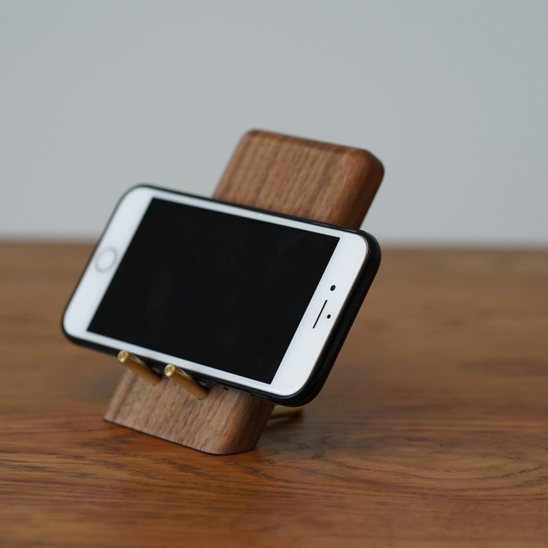 - Material: High quality natural wood and brass Design: Minimalist design matches any desk Easy to Use: Vertical or horizontal Stability: Anti-skid to keep your phone safe Size: Please refer to the 4th picture of the product