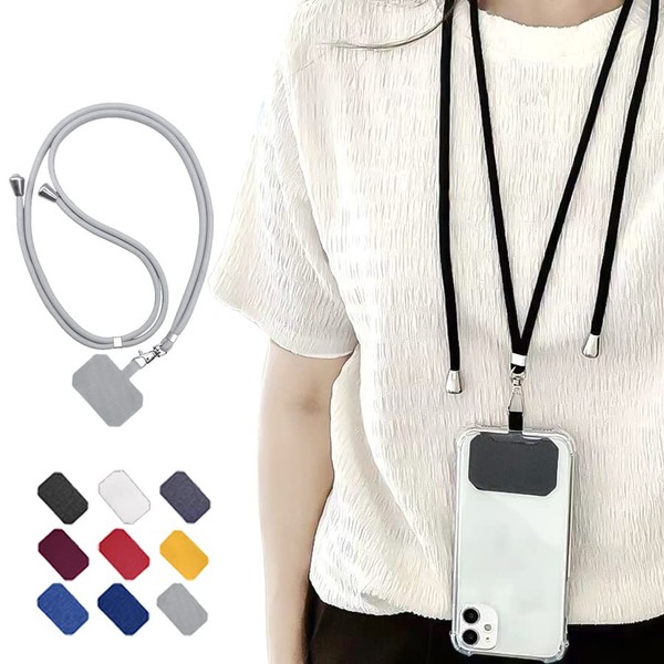Smartphone Strap, Neck Strap, Cell Phone Strap, Nylon, Neck Strap, Shoulder Strap, Adjustable Length, Loss, Fall Prevention, Forget Things, Lightweight, Durable Enhanced Version (Light Gray)