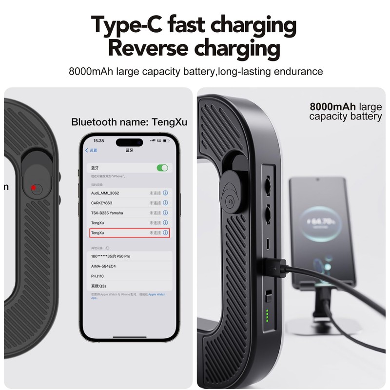 【Rig Light Build-in 8000mAh Rechargeable Battery】: Built-in 8000mAh high-capacity battery, long battery life, fully charged maximum brightness can be used for 3 hours, minimum brightness can be used for 40 hours, Type-C port charging (with Type-C charging cable), selfie ring light can be used while charging, can also be used as a mobile power supply for charging other devices,