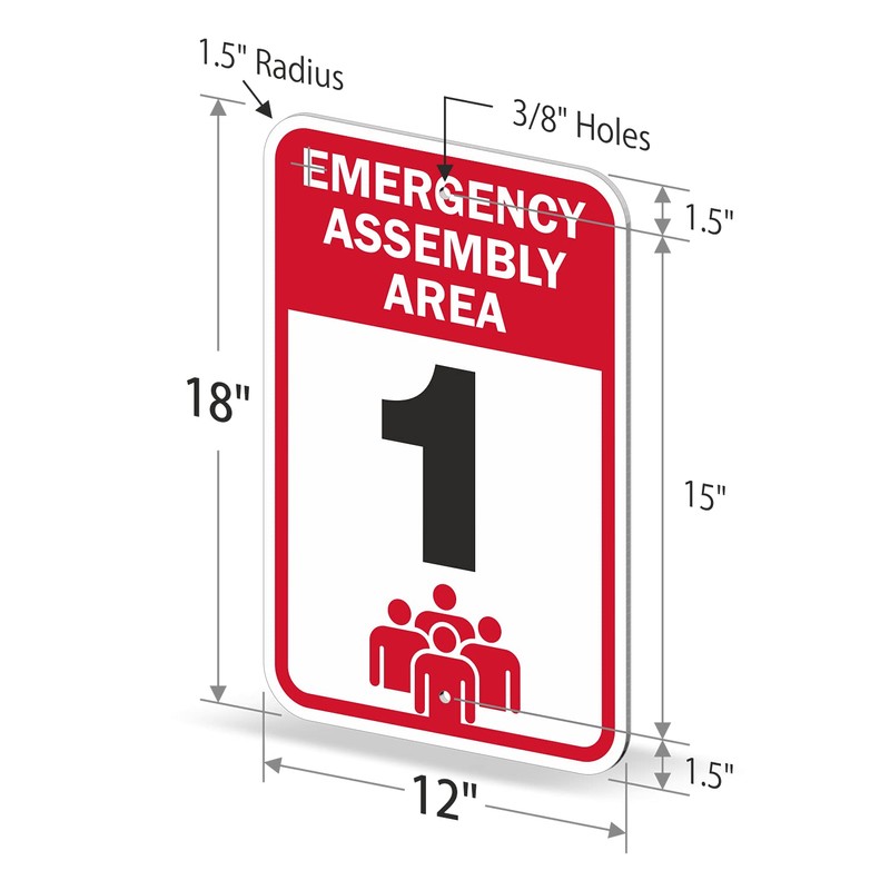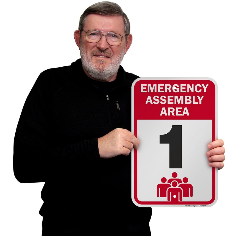 - DURABLE ALUMINUM: 'Emergency Assembly Area' signs are made using 63 mil thick non-reflective aluminum and do not bend easily. They have been proven to outlast the toughest of storms. Signs last over 10 years outside.