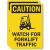 SmartSign 2-Pack 'Caution Watch For Forklift Traffic' Sign with Symbol - 10" x 14", 40 mil Laminated Rustproof Aluminum, Fade-Resistant, for Warehouses, Industries, Yellow and Black, Made in USA