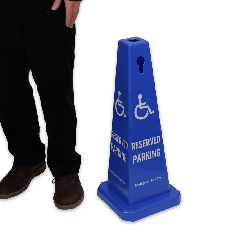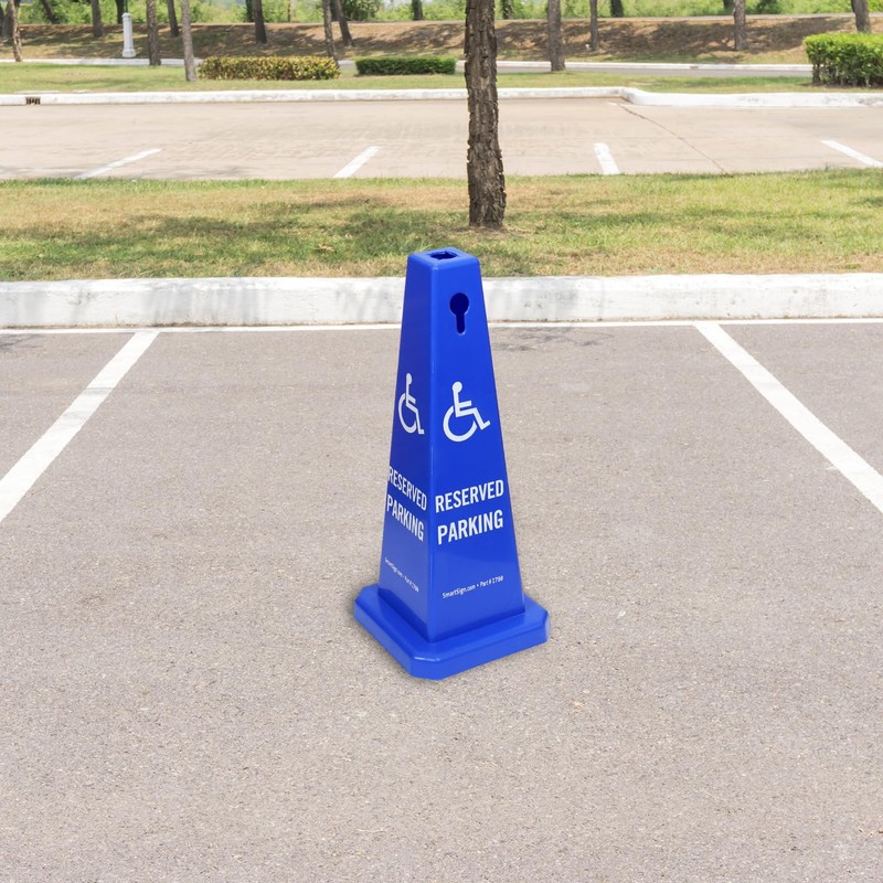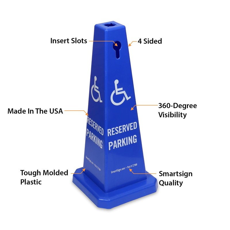 SmartSign 4-Sided Reserved Parking Cone Sign with Handicap Symbol - 26.75" x 11", Tough Molded Plastic, Stackable Traffic Safety Cones, Insert Slots for Easy Use, 360-Degree Visibility, Blue and White