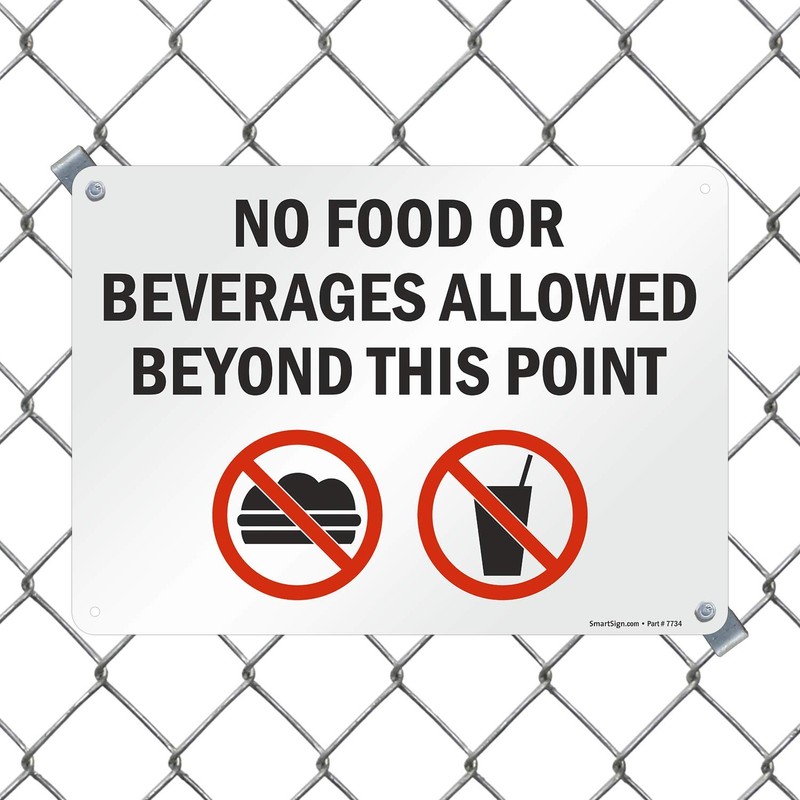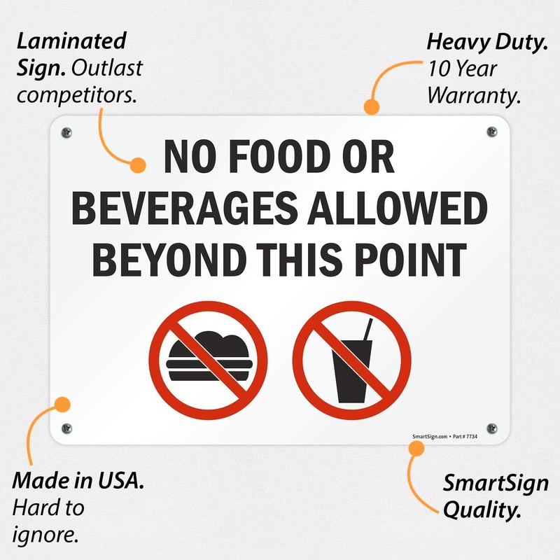SmartSign Aluminum Sign, Legend"No Food or Beverages Allowed" with Graphic, 10" High X 14" Wide, Black/Red on White