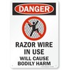 - PROMOTE SAFETY. Use this Razor Wire In Use, Will Cause Bodily Harm sign to prevent injuries.