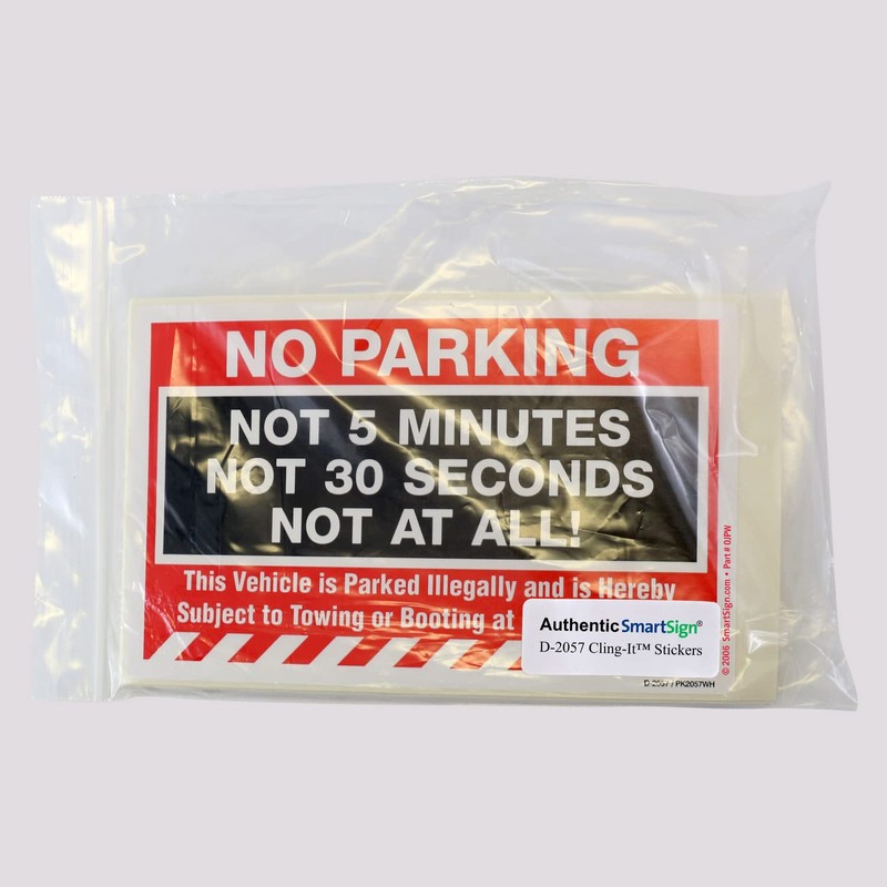 SmartSign "No Parking - Not 5 Minutes, Not 30 Seconds, Not At All" Pack of 50 Removable Stickers | 5" x 8"